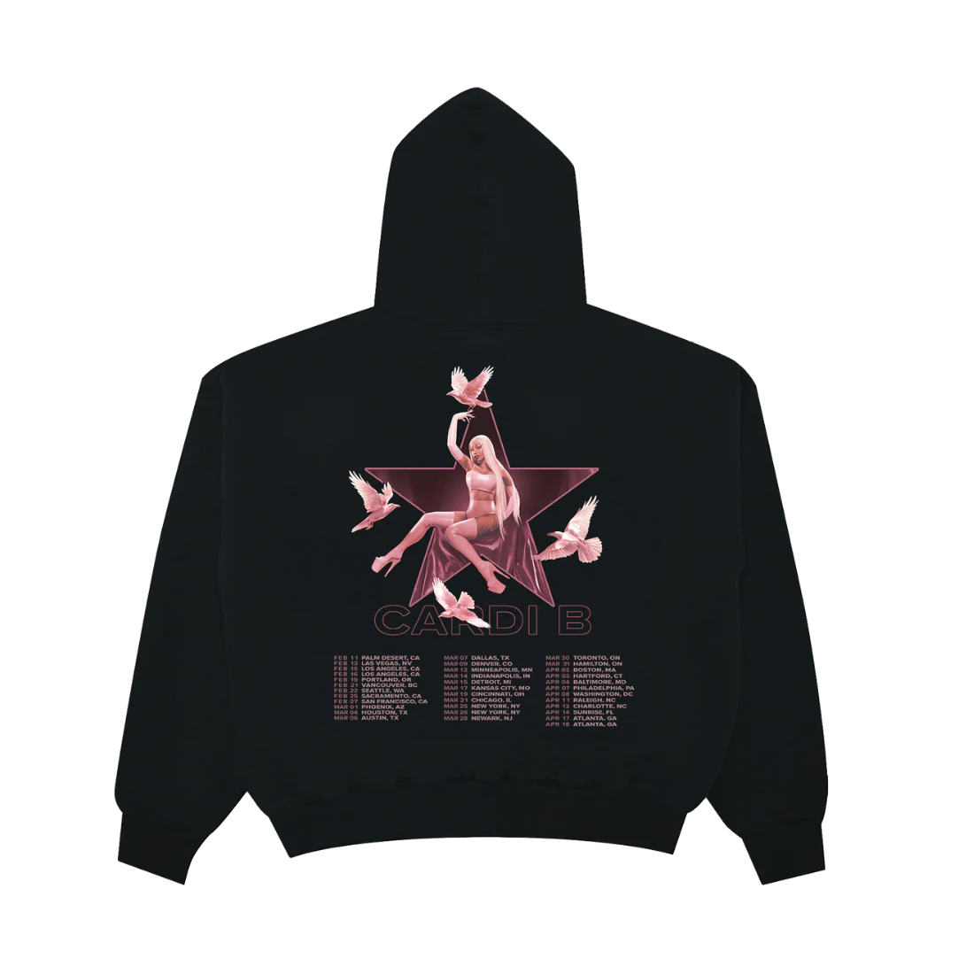 Features "Little Miss Drama" on the front and a graphic of Cardi B and tour dates on the back.